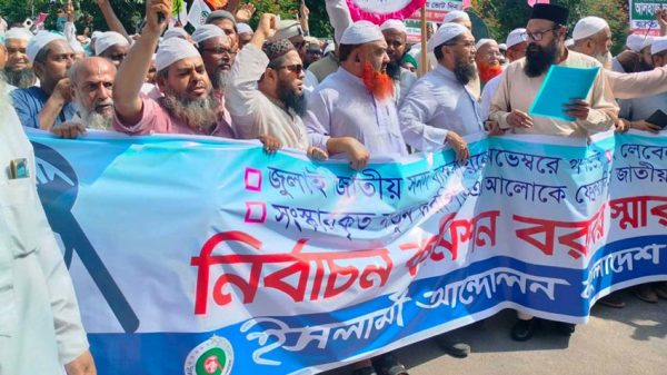 নভেম্বরে গণভোট আয়োজনের দাবিতে ইসলামী আন্দোলন বাংলাদেশ এবং জাগপা দলসহ আটটি রাজনৈতিক দল নির্বাচন কমিশনের সামনে বিক্ষোভ সমাবেশ করছে। জুলাই সনদের আইনি ভিত্তি বাস্তবায়ন এবং গণভোট আয়োজনের জন্য এই বিক্ষোভ