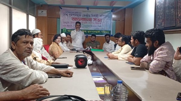 গতকাল সকাল ১১ টায় রাজধানীর পুরানা পল্টন মোড় এল মল্লিক কমপ্লেক্স কনফারেন্স হল রুমে বিশ্ব ধূমপানমুক্ত কেন্দ্রীয় নির্বাহী পরিষদের জরুরী মিটিং অনুষ্ঠিত হয়। উক্ত মিটিংয়ে আগামী ডিসেম্বর মাসে সংগঠনের প্রতিষ্ঠাবার্ষিকী
